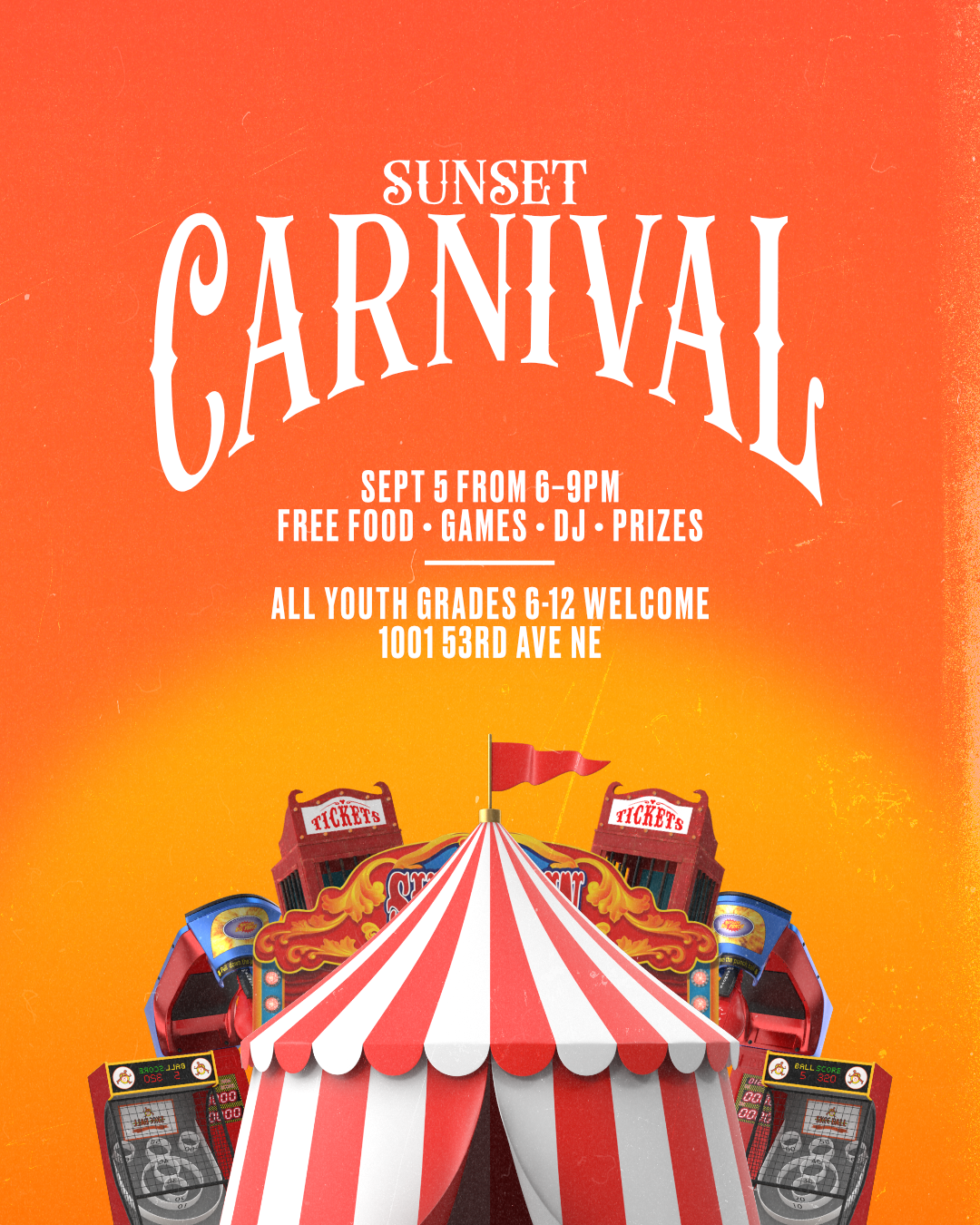 This event is only for students grades 6-12. Adults who are not our designated volunteers, or children under the age of 12 are welcome to attend other Connect events, but the Sunset Carnival and it's activities are ONLY for teenagers. Thank you for your understanding.